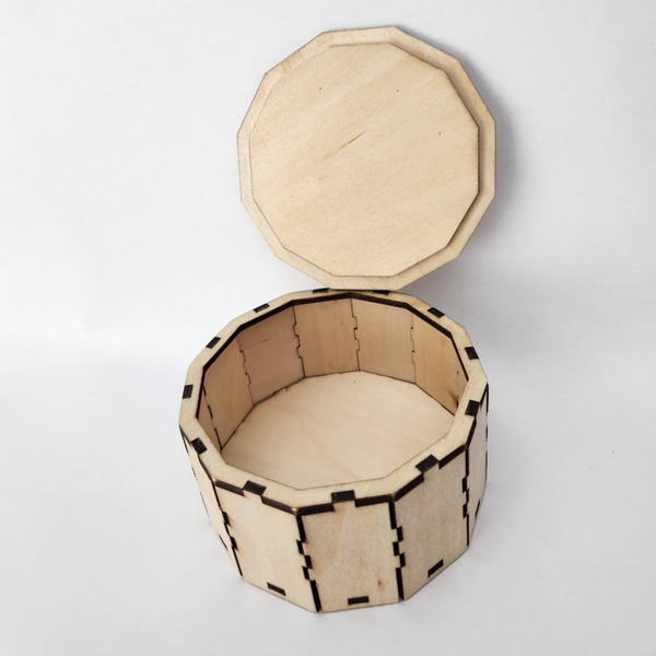 Simple round dodecagon 4''x2'' wooden box ready to engrave